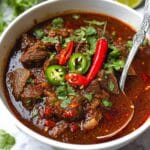 This authentic Mexican Birria recipe features tender lamb shoulder cooked in a rich, smoky chili sauce made from ancho, guajillo, and optional chiles de árbol. The meat is slow-cooked in a flavorful broth, perfect for serving as a hearty soup or as delicious tacos with your favorite toppings.