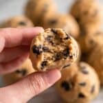 Store the protein balls in an airtight container in the refrigerator for up to one week. For longer storage, freeze them in a sealed bag for 2 to 3 months. To enjoy, thaw in the fridge or at room temperature for about 15 minutes before eating.