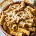 - Use a sturdy pasta like penne or rigatoni to hold up well in the creamy sauce.