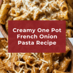Keywords: French onion pasta, one pot pasta, caramelized onions, creamy pasta, Gruyere cheese pasta, easy dinner, comfort food