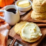 Keywords: Pumpkin Biscuits, Fall Baking, Pumpkin Pie Spice Biscuits, Flaky Biscuits, Breakfast Biscuits
