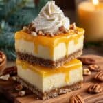 These Pumpkin Cheesecake Bars combine a buttery spiced crust with a creamy, rich pumpkin-infused cheesecake filling, making a perfect winter dessert favorite that’s both festive and comforting.