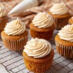 Delight in these moist and flavorful Pumpkin Cupcakes topped with a creamy cinnamon cream cheese frosting. Perfectly spiced with pumpkin pie spice and cinnamon for a cozy fall treat, these cupcakes combine the tender texture of pumpkin puree with a rich, tangy frosting that will satisfy your sweet cravings.