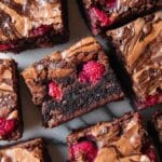 Delightfully rich and fudgy raspberry brownies made with a classic boxed brownie mix enhanced by fresh raspberries and swirls of raspberry jam for a burst of fruity flavor. Perfectly moist and packed with berry goodness, these brownies are easy to prepare and bake to golden perfection.