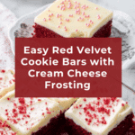 Keywords: red velvet cookie bars, cream cheese frosting, red velvet dessert, easy dessert bars, holiday treats