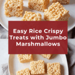Delightfully gooey Rice Crispy Treats made with jumbo marshmallows for an extra fluffy and chewy texture. This quick and easy recipe combines melted butter and marshmallows with crisp rice cereal, creating a classic no-bake dessert perfect for any occasion.