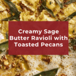 This delightful ravioli dish is prepared with rich browned butter infused with fresh sage, garlic, thyme, and crunchy pecans, finished with a bright hint of lemon and garnished with shaved Parmesan. It combines creamy cheese-filled pasta with aromatic herbs and toasted nuts for a flavorful, elegant meal that’s quick and simple to make.