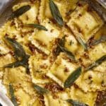 Keywords: ravioli, sage butter sauce, browned butter, pecans, Italian pasta, quick dinner, vegetarian pasta
