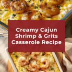 This Shrimp & Grits Casserole combines creamy, cheesy grits with tender, spicy shrimp for a comforting Southern-style dish. The quick-cooking grits are simmered in chicken broth and cream, then baked with shrimp seasoned with Cajun spices and topped with sharp cheddar cheese to create a rich, flavorful casserole perfect for an easy weeknight dinner or a cozy gathering.