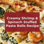 These shrimp and spinach stuffed pasta rolls are a delicious and elegant meal that combines tender jumbo shells filled with a creamy cheese and shrimp mixture. Topped with a rich roasted red pepper cream sauce, this dish is perfect for a cozy dinner or special occasion.
