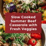 This Slow Cooked Summer Beef Casserole combines tender chunks of chuck roast with fresh summer vegetables like zucchini, cherry tomatoes, corn, and bell pepper, simmered slowly in a flavorful broth infused with garlic, smoked paprika, and fresh herbs. Perfect for a hearty, comforting meal that highlights the bounty of summer produce through slow cooking.
