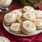 Keywords: soft eggnog cookies, eggnog frosting, holiday cookies, Christmas cookies, spiced cookies, nutmeg cookies