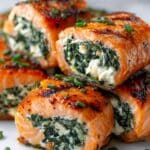Spinach & Feta Stuffed Salmon Pinwheels are a delightful twist on a classic salmon dish. These elegant pinwheels combine tender salmon with a creamy, flavorful filling that’s perfect for a special dinner or entertaining guests.