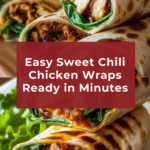 Sweet Chili Chicken Wraps are a flavorful and easy-to-make meal featuring tender chicken coated in sweet chili sauce, fresh crunchy vegetables, and optional creamy avocado or cheese, all wrapped in soft tortillas. Perfect for a quick lunch or light dinner, these wraps combine sweet, spicy, and fresh flavors for a satisfying bite.
