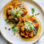 These Sweet Potato and Black Bean Tacos are a vibrant and satisfying vegetarian option packed with flavor. Roasted sweet potatoes complement the seasoned black beans, while a creamy avocado-pepita dip adds a delicious twist. Perfect for a wholesome weeknight dinner or casual gathering.