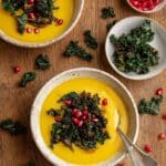 - Serve & Garnish: Remove the soup from heat and ladle into bowls. Top with optional garnishes such as fresh pomegranate seeds, kale chips, or roasted squash seeds for extra texture and flavor. Enjoy warm.