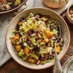 This Wild Rice Pilaf is a hearty, flavorful dish combining chewy wild rice with roasted delicata squash, shallots, shredded Brussels sprouts, toasted almonds, and sweet dried cranberries. Tossed in a tangy garlic Dijon dressing, it’s perfect as a nutritious main or side dish packed with texture and vibrant autumn flavors.
